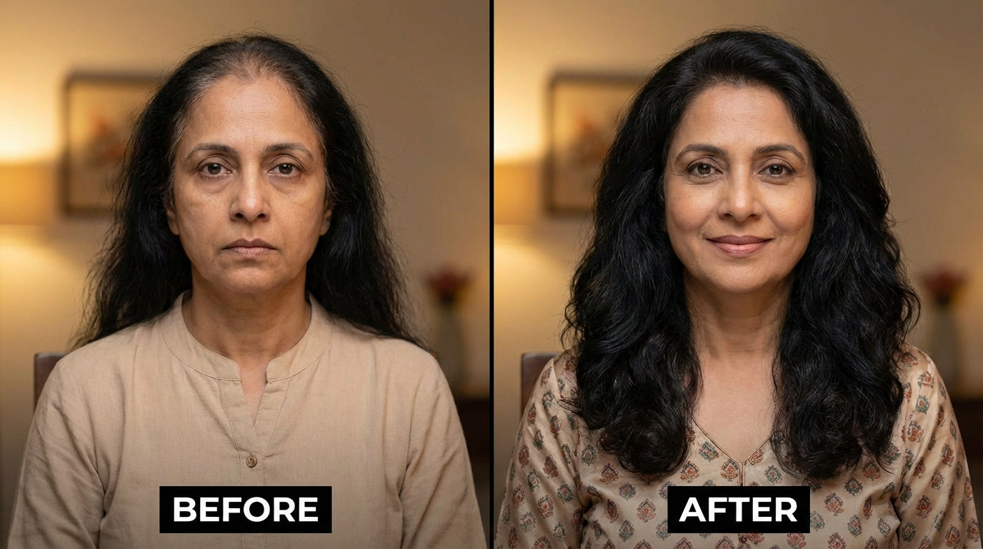 I honestly thought nothing would work for me. But my scalp feels healthy, hair fall reduced, and I can SEE new growth. I’m obsessed.